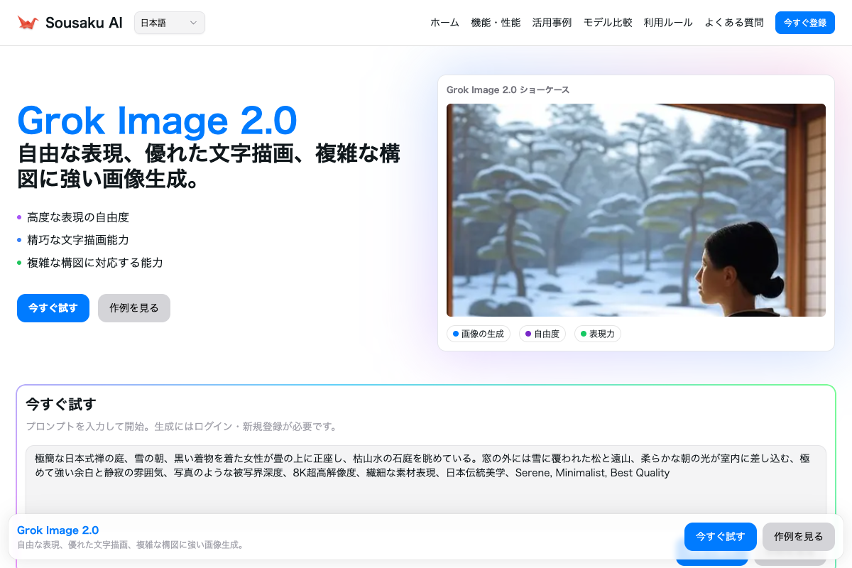 - Grok Image 2.0 の詳細を見る:https://sousaku.ai/models/grok-image-model-2