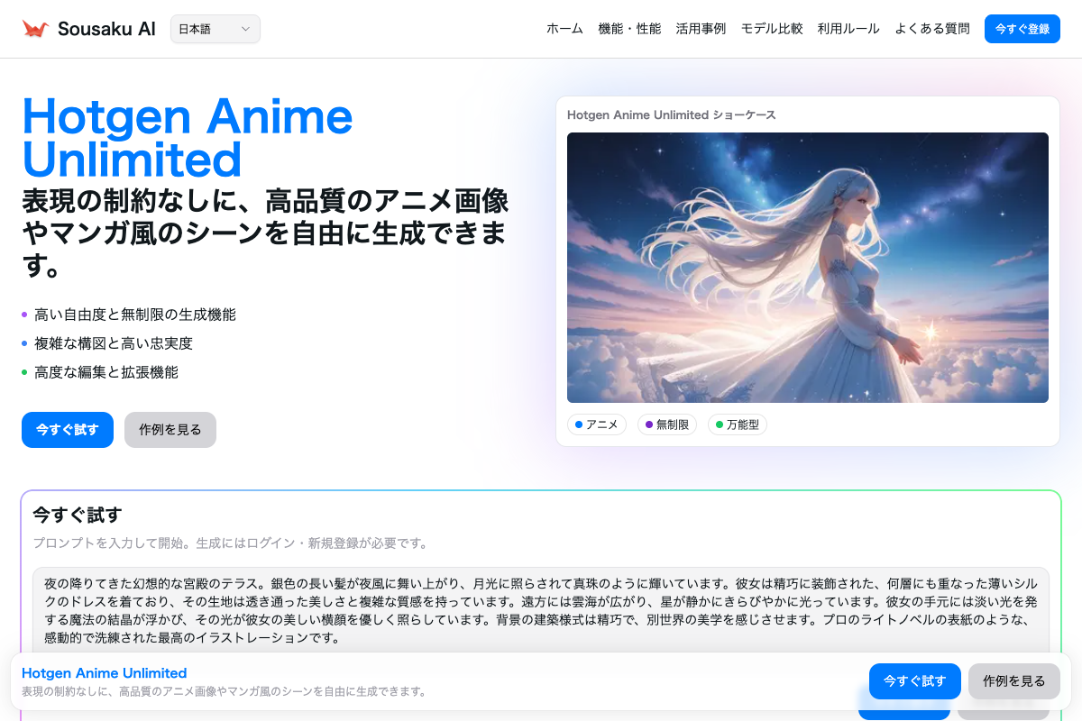 テキストから画像生成:https://sousaku.ai/create/text2image/hotgen-anime-unlimited
