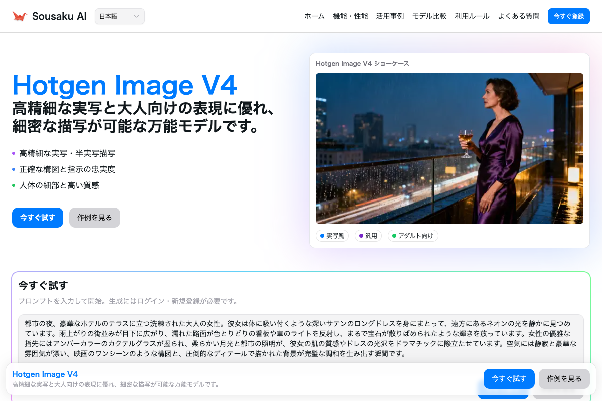 - Hotgen Image V4の詳細:https://sousaku.ai/models/hotgen-image-nsfw
