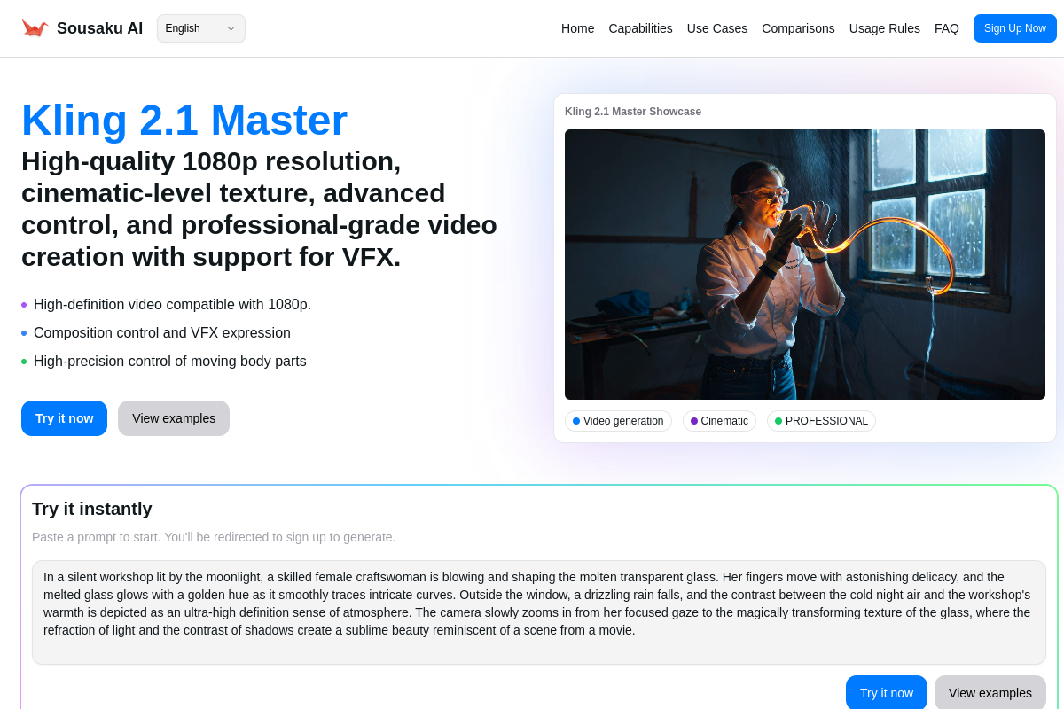 Sousaku.AIでは、このKling 2.1 Masterを含む世界中のトップモデルを、ポイント消費型のWebプラットフォームで手軽に利用できます。