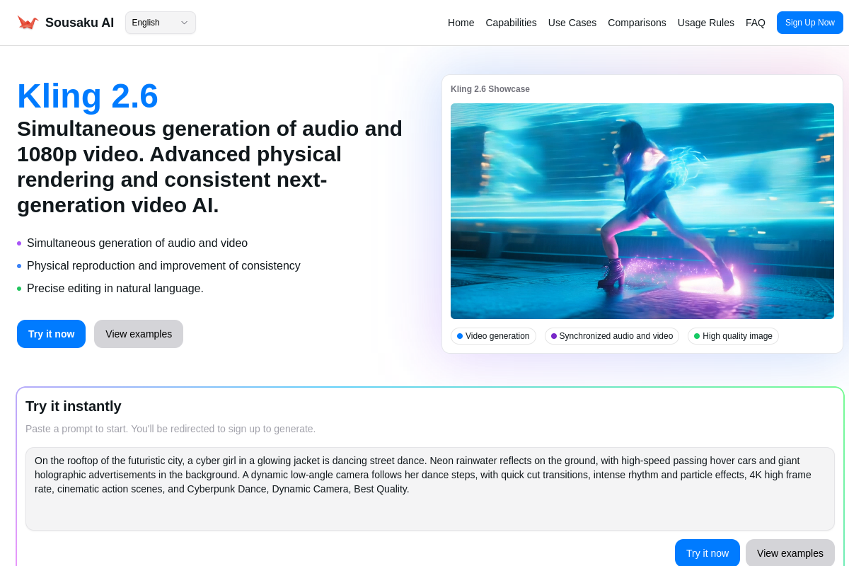 Sousaku.AIでは、Kling 2.6をはじめとする最新のAIモデルをすぐに試すことができます。あなたのプレゼンテーションに革新をもたらす素材作りを、今すぐ始めてみませんか。