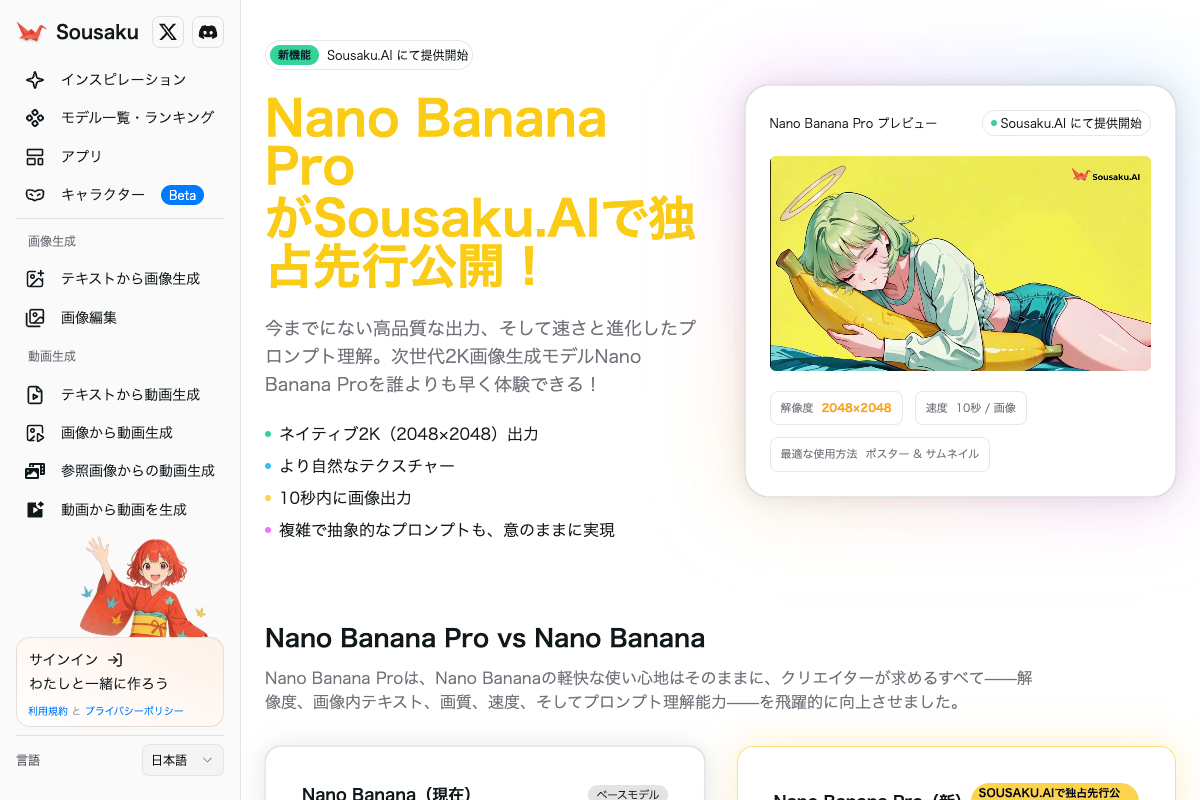 結論として、Nano Bananaは「SNS向けショートコンテンツの高速量産」や「制作準備段階(プリプロダクション)におけるラフ制作」において、非常に実用性の高い選択肢となります。このモデルは、ポイント消費型のWebプラットフォームであるSousaku.AI上でシームレスに利用可能です。